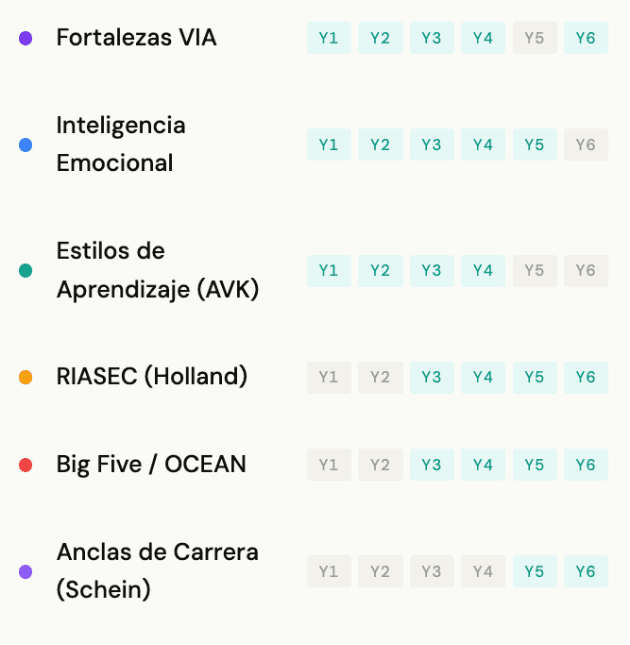No un test puntual, es un sistema que acompaña al alumno desde los 12 años con instrumentos validados, reportes accionables y análisis de IA.